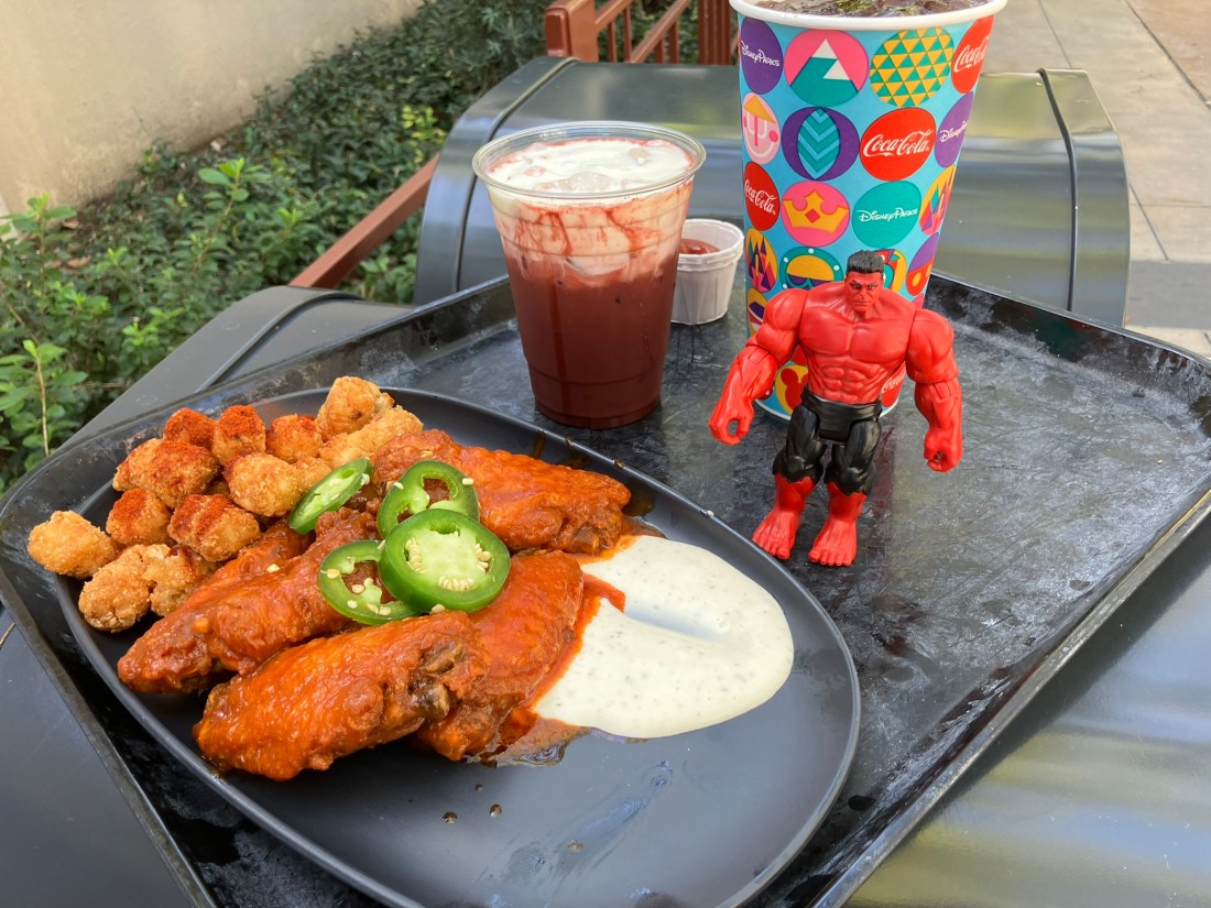 I brought my Red Hulk fig with me - had to - to enjoy the wings... Last week Disneyland announced that they would be adding a few new items to the menus at Avengers Campus to celebrate the opening of CAPTAIN AMERICA: BRAVE NEW WORLD. The items arrived at Pym's Test Kitchen, Pym's Tasting Lab, … Continue reading Trying The CAPTAIN AMERICA: BRAVE NEW WORLD Food and Beverages At Avengers Campus – Disneyland