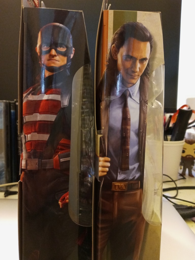 So when I found out the latest Marvel Legends wave features characters from both Wandavision and TFATWS as well as Loki – my anticipation was high. And when I walked into Target today and saw they had arrived, well lets just say it was a great Thursday. So I picked up two of my favorites at Target today, US Agent John F. Walker and the cosmic mistake himself, Loki (yes I guess I like villains). I saw them in the wild – a full eight weeks before they were due on amazon. So after getting back home, I thought I would share some photos and unboxing with you tonight.