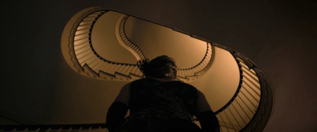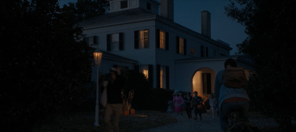 But DGG creates a film so far off the expected track that when that confrontation and win ultimately come, I was honestly thinking “did Michael want to die?” Heck I can’t even write about this film in the Textually/Subtextually/Metatextually sub-categories that I’ve been using for HALLOWEEN 2018 and HALLOWEEN KILLS. There is plenty of metatexutal evidence as well, pointing to what a surrealistic haunted house the entire town of Haddonfield has become. Yes, the Myers house has been demolished. But does it matter when in our opening shot we see a house that from the outside looks like it is two stories and inside it looks like four? This two story/four story house is the ultimate metaphor for there being so much more going on in Haddonfield than whatever appears on the outside (and hey lets face it, even the outside is pretty ugly).