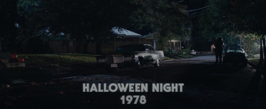 Subtextually: This film has so much going on subtextually it almost has too much. This Frank Hawkins prologue is so great because it really sets the mood for the film and a greater thesis of memory vs. fantasy that runs throughout HALLOWEEN KILLS. It also creates the general off-kilter tone that DGG wants to infuse audience members with throughout. Part of me thinks that DGG wanted to direct this entire trilogy just to do the backstory on Deputy Frank Hawkins that we witness in this 12 minute prologue of HALLOWEEN KILLS. Yes it is complicated, yes DGG shoots it with harsh lighting, different depth of field, and runs it all through a grain filter to try and emulate the true cinematic style of John Carpenter, and yes it feels like something that was actually in HALLOWEEN 1978 or HALLOWEEN II. But none of that is true. This is a new prologue – something entirely fabricated by DGG and Danny McBride. It is almost like DGG and McBride are saying “yeah we know we are a requel, and now we are going to go over the line – we are going to do what other requels want to do but don’t have the balls to do. We are going to rewrite your own memories.”