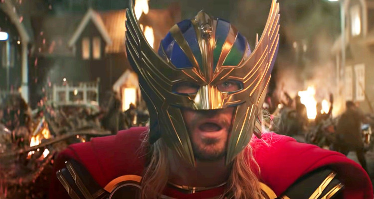 Anyway, this “super armor” (a term I gave it – its is given no official name) is what Thor creates when he sees Jane Foster as Mighty Thor and her helmet like armor. I loved this armor mostly because it seemed to be the apotheosis of Taika Waititi’s 1980s Flash Gordon aesthetic. It is bright, colorful, and like I previously said, very VERY Kirby-esque. Is it practical in any respect? No. Thor takes the helmet off within seconds. Can it be used on a regular basis in the MCU? No. Does it look absolutely outstanding to me? Yes. And I am so glad that it is used for the rest of the film – in a modified form. The cape has never looked better – well, maybe one time…