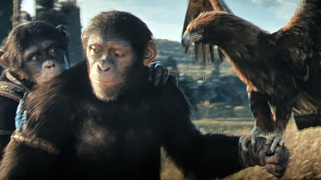 Wes Ball’s KINGDOM OF THE PLANET OF THE APES is both an extension of the Wyatt/Reeves trilogy but also sets itself up as the first installment of its own new APES trilogy as it is set about 500 years after Reeves’ last installment. Mae is a human (also called a “Nova” or an “Echo” by the intelligent apes inhabiting planet earth) and the principal human character in this film. Other humans are now hunter/gatherer tribes with diminished mental capacity and having lost the ability to speak and communicate, similar to their state in the original PLANET OF THE APES in 1968 when Charleton Heston’s Taylor showed up. Taylor was ostensibly the lead in this film and humans were always a major part of the original five film Apes cycle in the 1960’s and 70’s. Similar to their eschewing of twists, Wyatt/Reeves largely eschewed human characters in lead roles, instead making them supplementary to the Apes’ own character journeys and arcs. Even James Franco in RISE OF THE PLANET OF THE APES is there to assist Caesar in his ultimate journey to become the intelligent leader of the apes. And while I loved the Wyatt/Reeves films, I really missed that human element. But Wes Ball, and writer Josh Friedman, brings the human element back to the APES franchise, making Mae a pivotal part of this film and one of the co-leads.