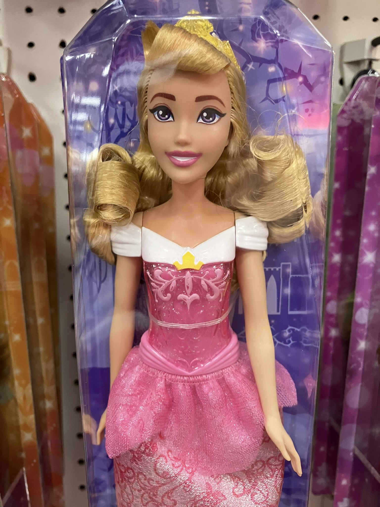 I know it’s just new packaging but I love it and really wanted to write about it and spotlight it. At the beginning of this year, I wrote about how all Disney 100 branded-dolls were pulled and replaced with their more generic version (CLICK HERE). Now we know why – Mattel was in the process of rolling out this wonderful new packaging.