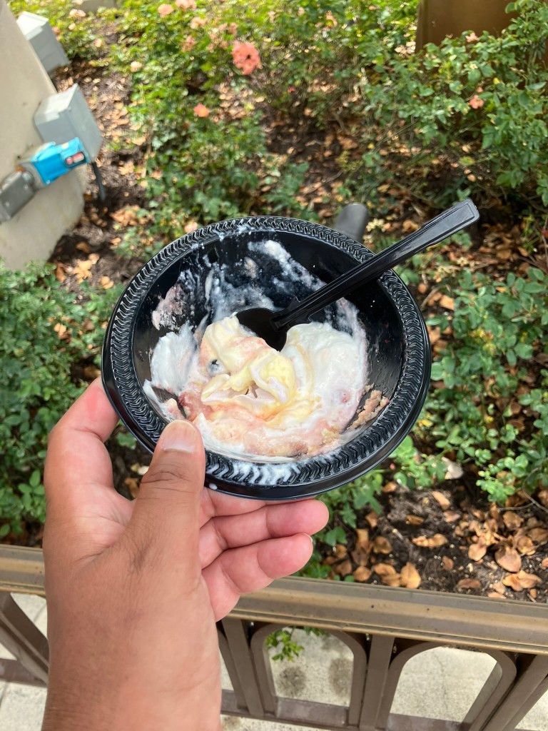 This was the first Princess Week treat that I ate. I ordered it up on the afternoon of my arrival as I waited for the Magic Kingdom’s newest ride, Tiana’s Bayou Adventure, to open in the late afternoon (yes, that’s right, sadly the ride had been down most of the day). Shortly after ordering and consuming, the ride opened. So I thank the cone for the good luck!