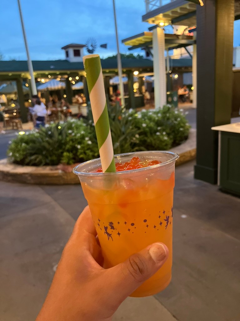 And overall, I loved this beverage as well. I sampled it towards the beginning of my After Hours event at Disney’s Hollywood Studios and it was somehow refreshing, surprising, and delicious! It oddly represented Belle well in its simplicity and ease – yet also felt refined and somehow fun. Intentional or not, there was a simple thematic resonance here. It had a citrus taste balanced with an inherent sweetness that was always present. The strawberry boba pearls offered a nice textural and taste contrast. This was one of the simplest but also best treats in Princess Week. It is the perfect treat also for August in Florida. This was priced for $6.99 which might seem high for a drink but I would argue with a coke costing $5 – it was well worth the extra $2 for this unique. The price felt fair (at Fairfax Fare no less!).