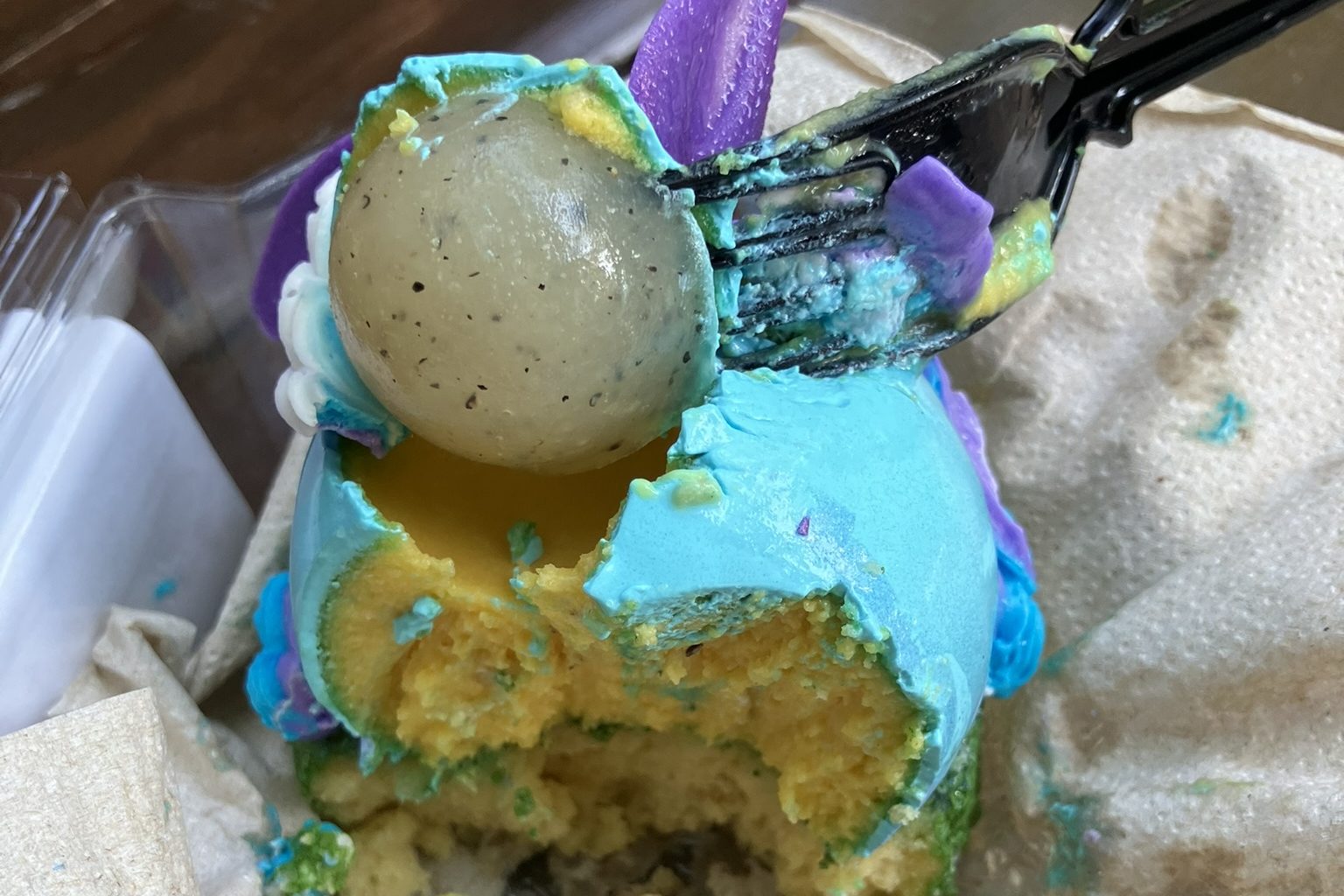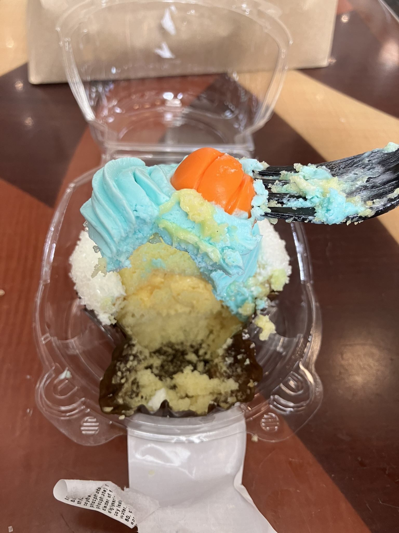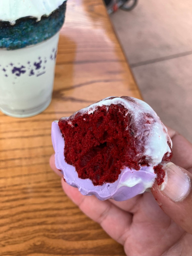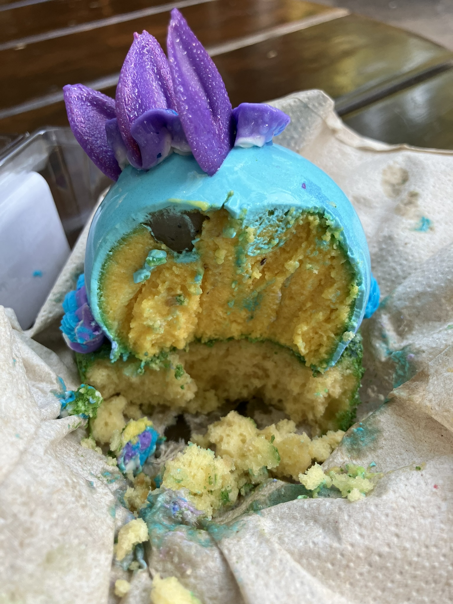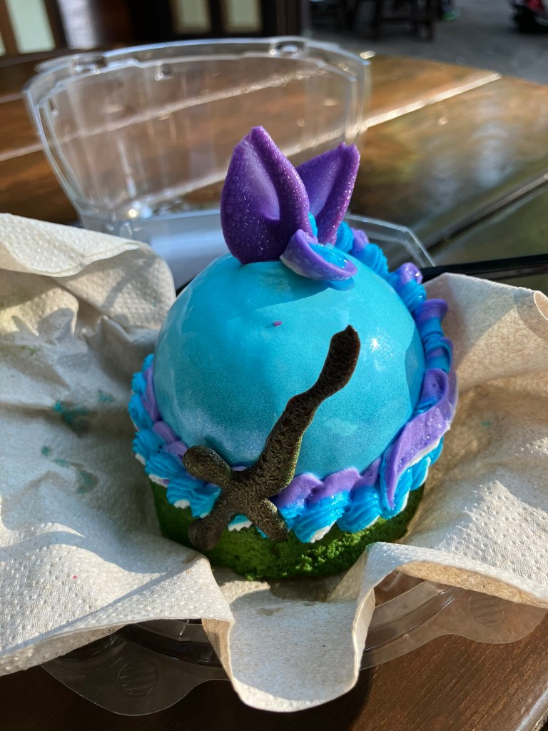 I took the cake to go and that was probably a mistake but I had already eaten the Little Mermaid shake and the tart and was stuffed. So when I got back to my room at the resort later, the frosting had come off. Nonetheless, it was otherwise well preserved. This is essentially a simple cake and I feel like they “made it for kids”. Now the Cinderella cupcake at the Contemporary was also simple but this one feels not as well composed. Maybe it suffered from being the third treat that I consumed that afternoon but I was just not feeling it – especially for the price. It also felt like in terms of thematic tie-in it was lacking, even if compared to the other Moana cake at the Poly. Having said all that, the fourth treat did offer something fun.
