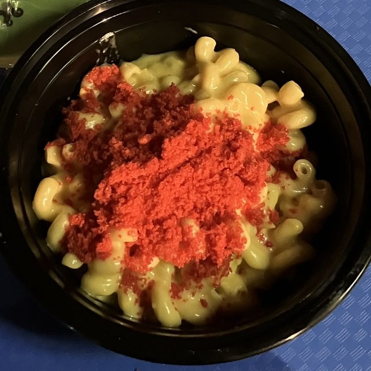 The Evil Mac and Cheese is essentially the usual Minion Mac and Cheese but served with a topping of crushed hot cheetos. It is delicious. The mac and cheese is creamy, and tasty and the cheetos add a nice crunch and kick. For $9.99 this is an absolute steal and I wish it was offered all year long. Although it does not LOOK like anything related to the minions (well I guess it is yellow), one can imagine the evil minions making it in the back quite easily, which is what I like to do.