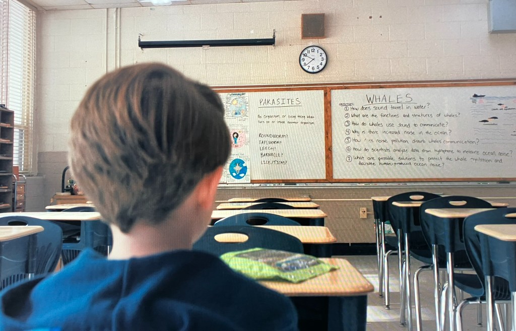 The parasite vs. prey vs. predator imagery runs throughout the film in the background and on the walls of Justine Gandy’s classroom and Alex Lily’s home. The first image that the predator vs prey vs parasite theme is seen is in Justine Gandy’s classroom. This is seen on a board featuring odontoceti and mysticeti whales. The former are toothed whales (including dolphins and porpoises) that hunt individual prey, while Mysticeti, the latter, are baleen whales (like blue and humpback whales) that filter feed on smaller organisms like krill. The two suborders differ in key ways: Odontocetes have a single blowhole and use echolocation, while Mysticetes have two blowholes and use baleen to strain water for food. This distinction is basically Alex vs Gladys. Alex is the Ondontocete, and the film becomes his transformation, as he realizes that to survive he will have to no longer ignore the present and confront and ultimately feast on Gladys and become a predator. Gladys is the Mysticete, still consuming and destroying – though more parasitically and slowly, allowing her feeding to continue.